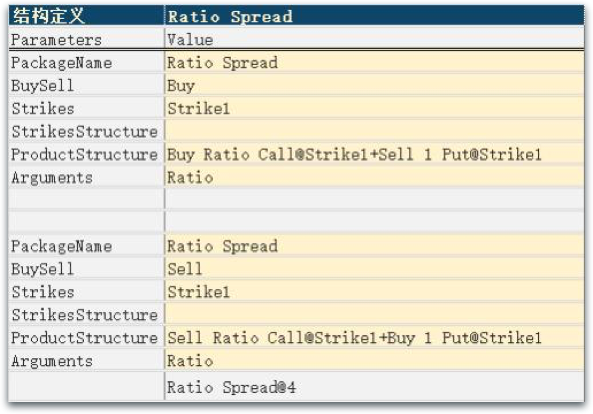 比如:通過(BUY 1 CALL@K1+SELL 2 CALL@K2)來定義RATIO SPREAD結(jié)構(gòu)化產(chǎn)品,并生成合約、讓客戶經(jīng)理只需要熟悉RATIO SPREAD合約要素、以及PAYOFF,而不需要關(guān)系期權(quán)結(jié)構(gòu)細(xì)節(jié)。