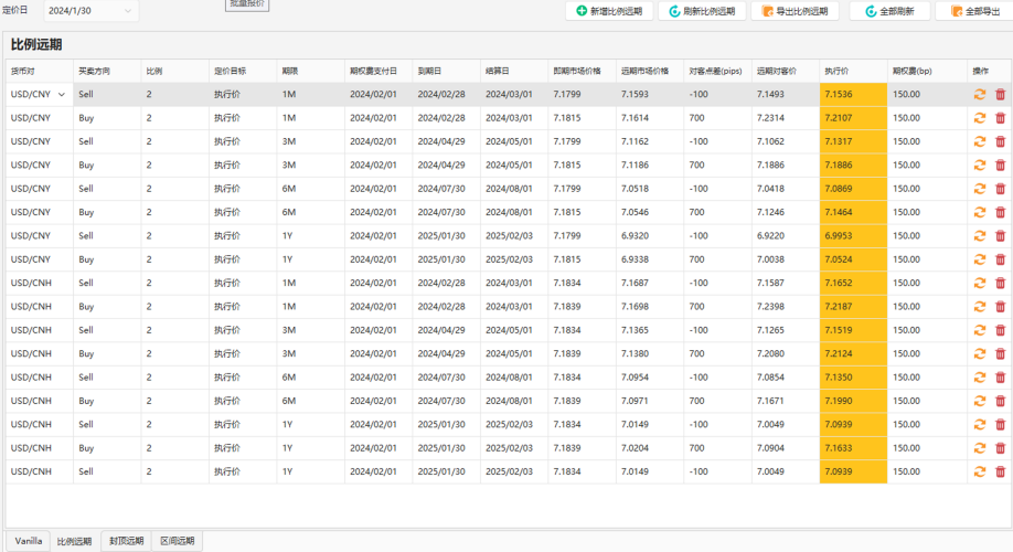 提供外匯代客結(jié)構(gòu)化遠(yuǎn)期(包括比例、區(qū)間、加蓋等遠(yuǎn)期)品種的批量報價