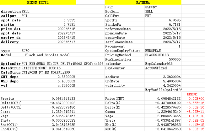 通過設(shè)定參數(shù),可以達(dá)到和路透EIKON Excel定價結(jié)果完全一致