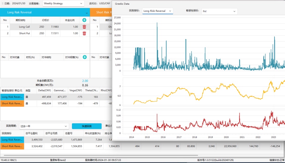系統(tǒng)保存10年歷史數(shù)據(jù),包括歷史匯率價格、波動率、收益率的,這些數(shù)據(jù)可以用于對期權(quán)交易策略進(jìn)行回測,查看不同的交易策略的盈虧、年化收益、夏普率、最大回測等回測指標(biāo),并可以展示歷史價值和風(fēng)險指標(biāo)變化。為你的交易策略提供數(shù)據(jù)支持